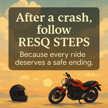 After a crash, follow RESQ STEPS: a rider’s calm path from shock to safety.